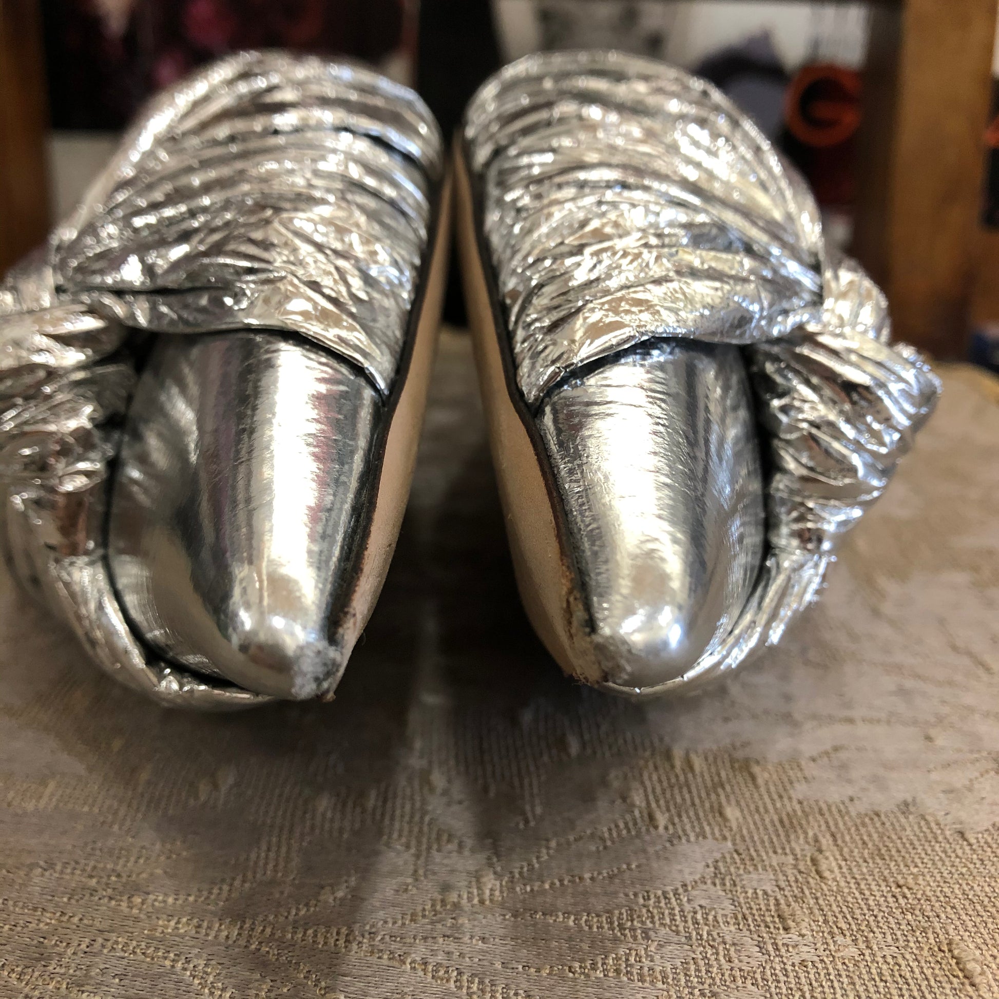Slingback mules Jimmy Choo in pelle increspata argento. Modello Annabell plat. Pre-amato. Fatto in Italia.