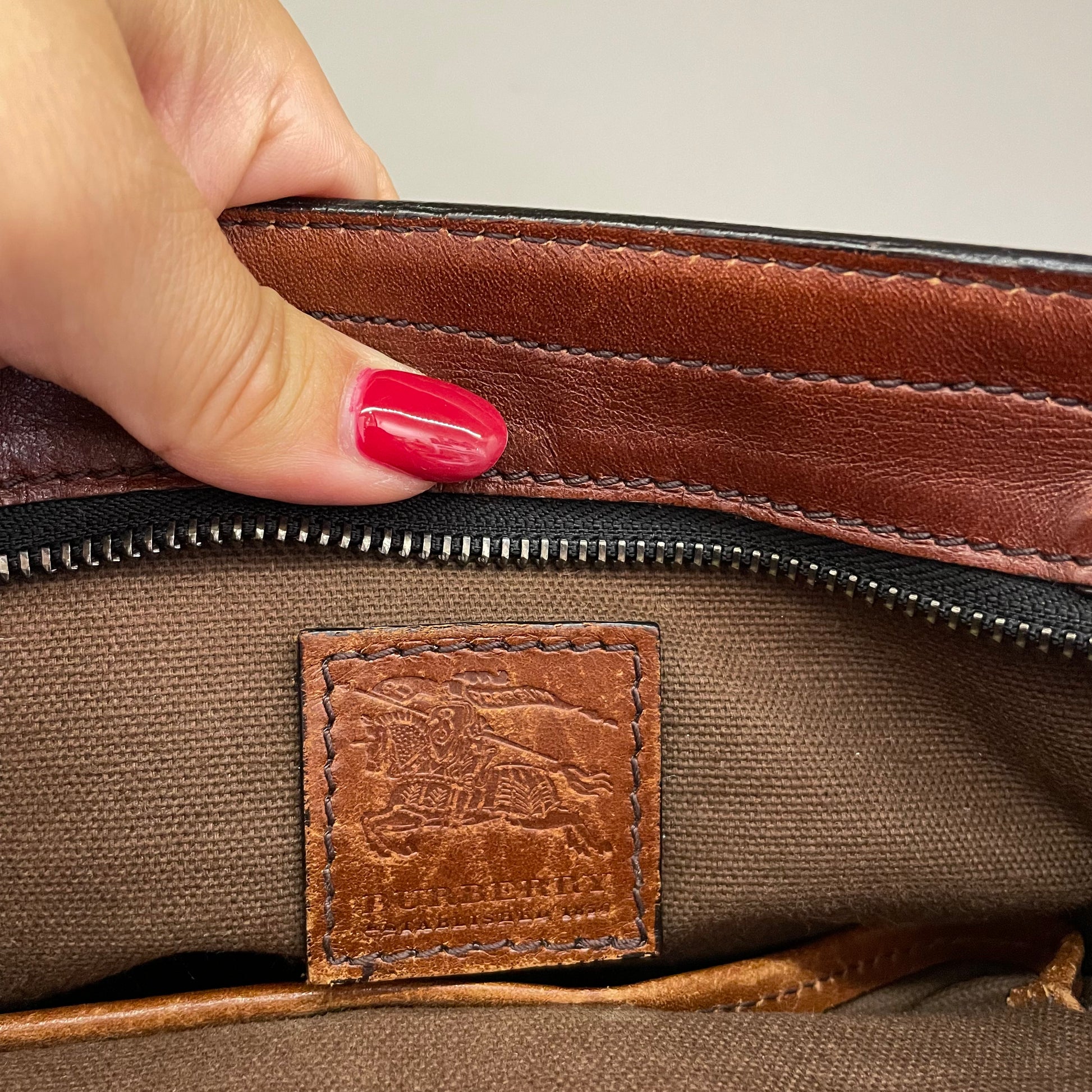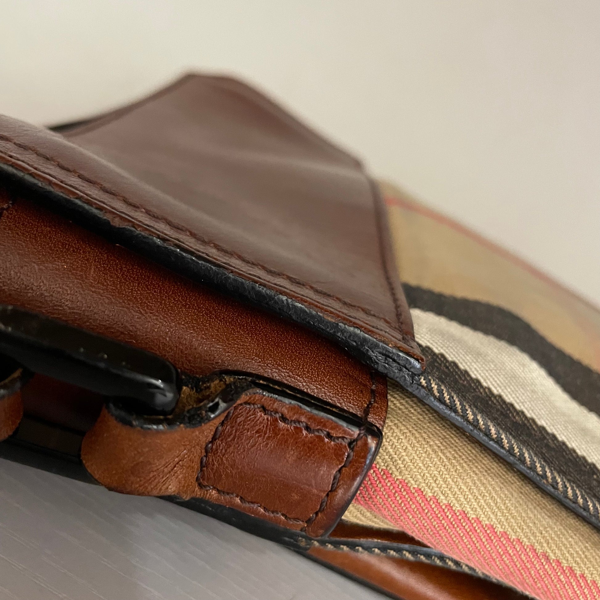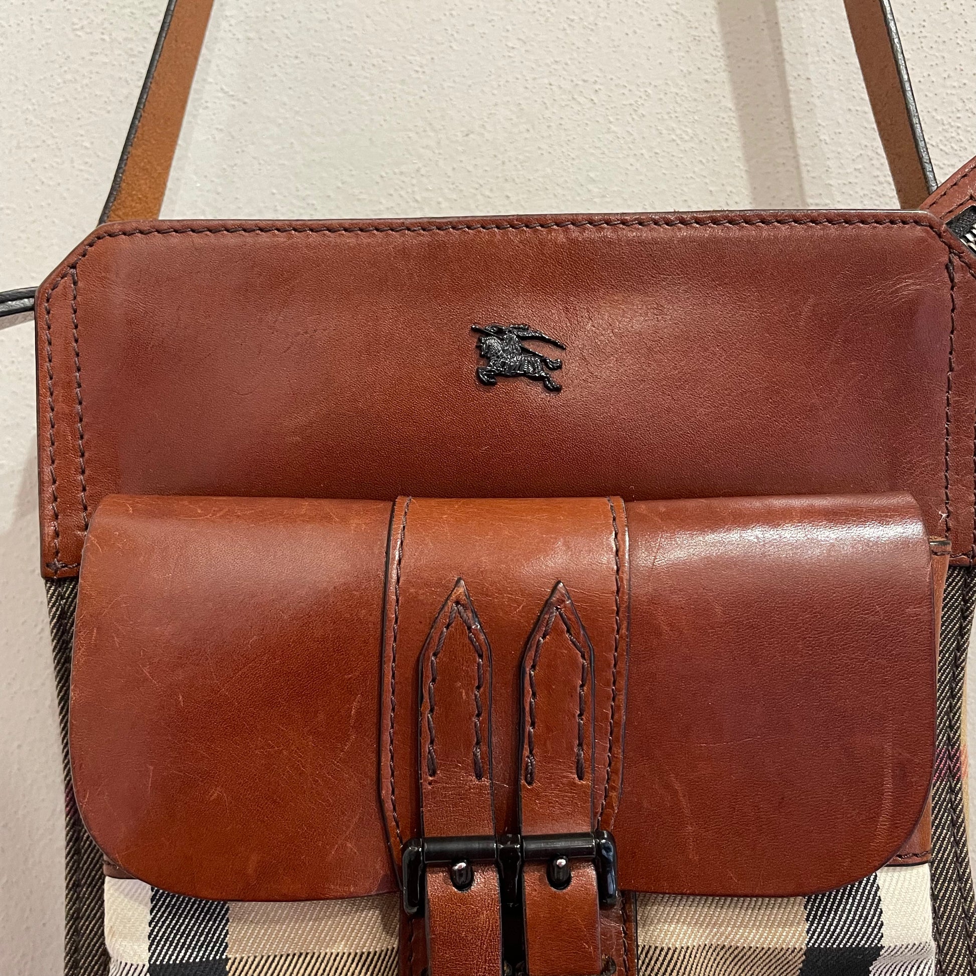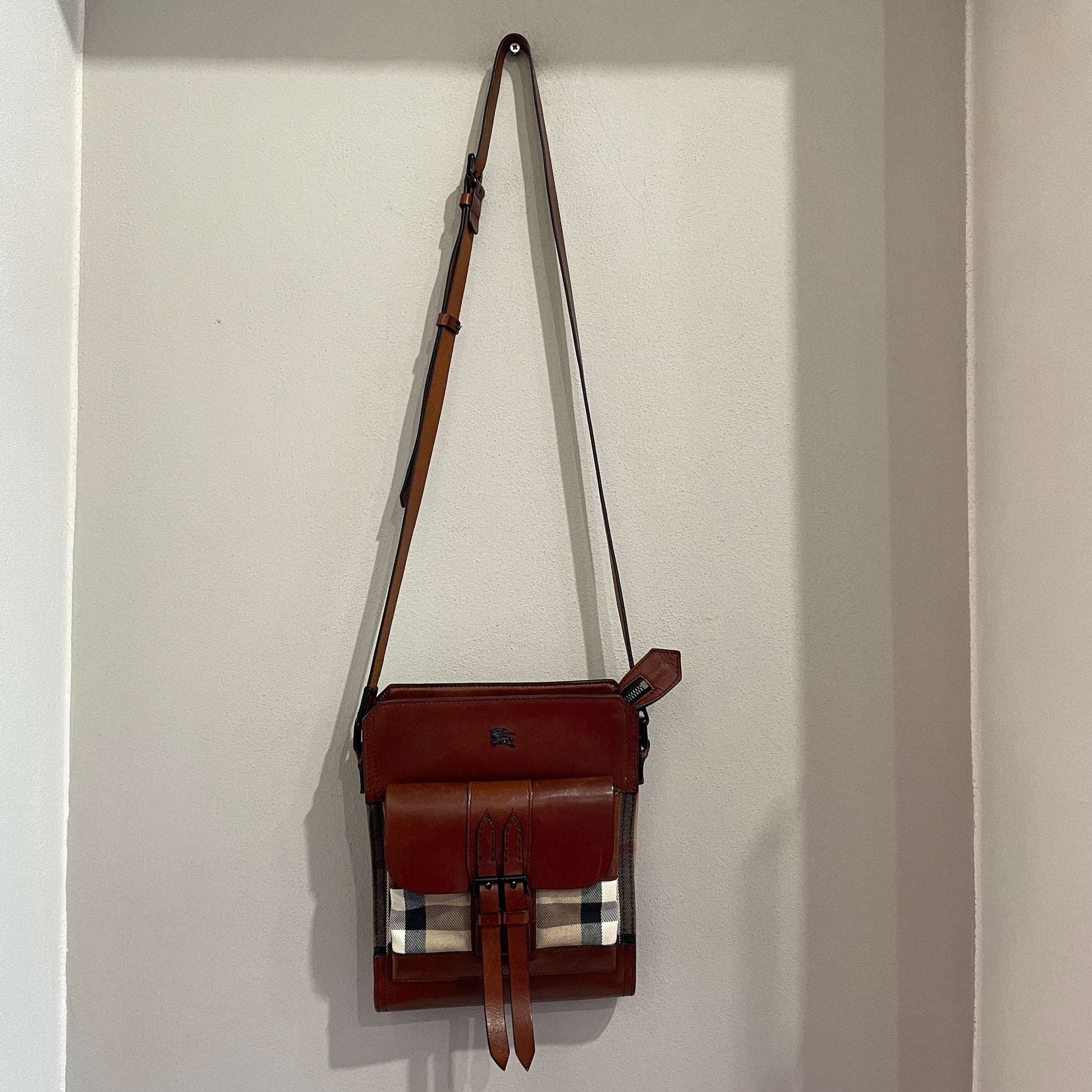 Tracolla unisex Burberry in pelle e tessuto check. Lievi segni come da foto. Made in Italy.