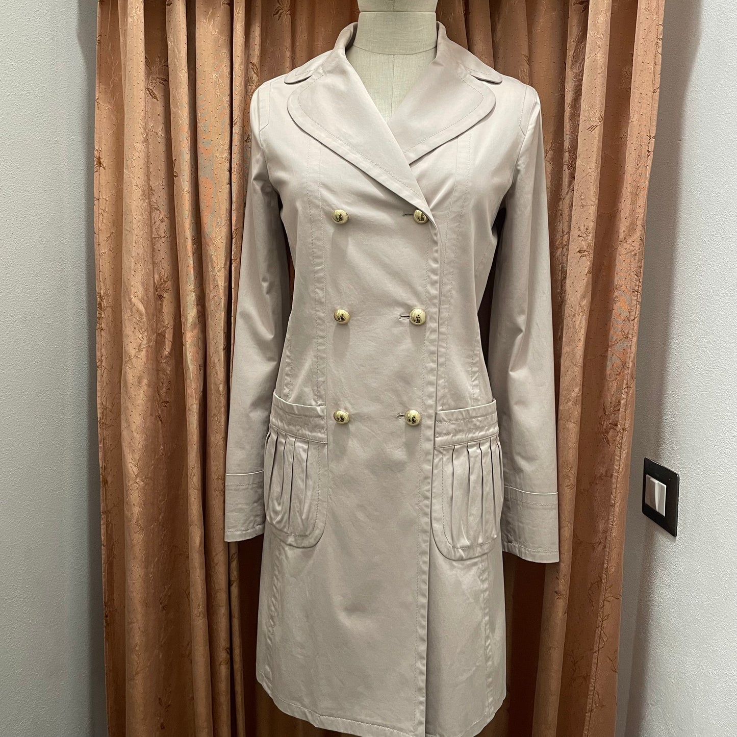 Trench in cotone color lilla chiaro Salvatore Ferragamo. Un capo perfetto per la primavera. Impunture tono su tono. Martingala con bottoni sul dietro. Foderato. Tessuto leggermente elastico, può vestire fino ad una taglia 40. Le misure sono: circonferenza torace 88 cm, circonferenza vita 80 cm, larghezza spalle 40 cm, lunghezza manica 62 cm, lunghezza dietro 87 cm. Made in Italy.